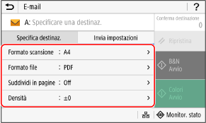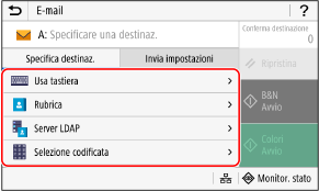 Se la destinazione per l'invio è limitata per via delle impostazioni di autenticazione della funzione Invio, non è consentito specificare un'altra destinazione. Per dettagli, contattare l'amministratore.