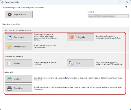 Fare clic su [ScanGear] per visualizzare ScanGear MF e configurare le impostazioni avanzate di scansione. Per maggiori informazioni, fare clic su [