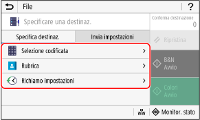 Se la destinazione per l'invio è limitata per via delle impostazioni di autenticazione della funzione Invio, non è consentito specificare un'altra destinazione. Per dettagli, contattare l'amministratore.