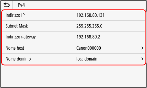 Avvio della IU remotaQuando si usa un indirizzo IPv4, attenersi alla procedura indicata di seguito se si desidera inviare un comando ping dal pannello di controllo per accertarsi che la macchina possa collegarsi a un dispositivo di rete.