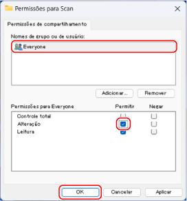 Em [Permissões], selecione a caixa de verificação [Permitir] em [Alterar].