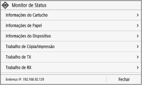 Este ecrã é apresentado quando prime [Monitor Status] no ecrã [Início] e noutras localizações.