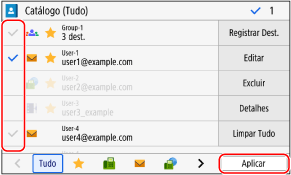 Selecione as caixas de verificação dos destinos que pretende especificar e prima [Aplicar].