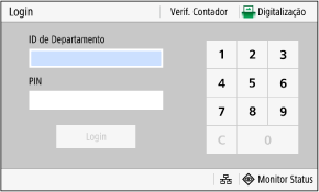 Quando a gestão de IDs de departamento está configurada, é apresentado o ecrã de início de sessão que se segue. Introduza o ID de departamento para iniciar sessão. Se o PIN estiver definido, introduza o PIN.