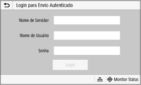 Quando o envio autenticado (autenticação do servidor LDAP) está definido, o ecrã de início de sessão para envio autenticado é apresentado ao efetuar operações de digitalização e fax. Introduza o nome de utilizador e a palavra-passe geridos com o servidor LDAP para iniciar sessão.
