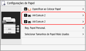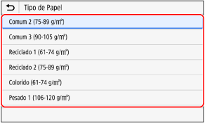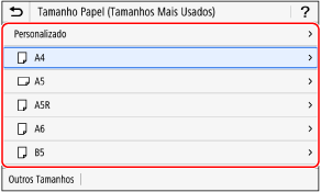 Pode alterar o tipo de papel apresentado no ecrã no passo 3. Ocultar tamanhos de papel não utilizados