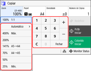 O zoom é definido automaticamente de acordo com o tamanho do papel utilizado para copiar.