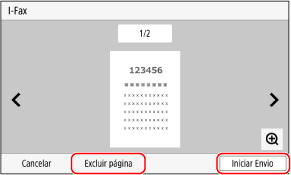 Se existirem páginas que não pretende enviar, abra a página e prima [Excluir página].