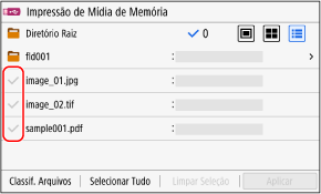 Selecione as caixas de verificações dos ficheiros que pretende imprimir.