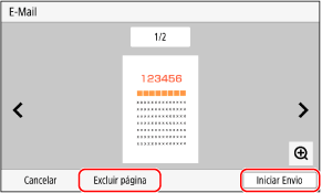 Se existirem páginas que não pretende enviar, abra a página e prima [Excluir página].