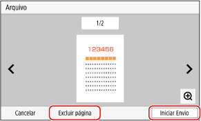 Se existirem páginas que não pretende enviar, abra a página e prima [Excluir página].