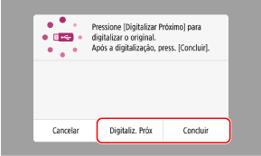 Para continuar a digitalizar originais, coloque-os no vidro de exposição e prima [Digitaliz. Próx].
