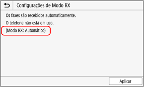 Depois de apresentada a mensagem [Configurações definidas.], é apresentado o ecrã [Configurações de Modo RX].