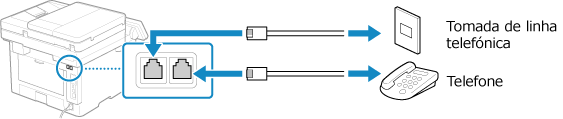 Ligue o cabo telefónico fornecido à tomada de linha telefónica (LINE) na máquina e à tomada de linha telefónica na parede.