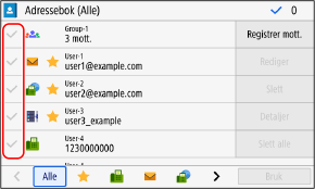 Redigere og slette mottakere i adresseboken (kontrollpanelet)