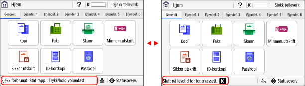 ] på skjermbildene [Hjem], [Faks] eller [Skann].