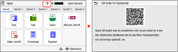 På noen skjermbilder som viser feilkoder eller feil, vises en QR-kode som gir deg tilgang til relaterte sider i bruksanvisningen.