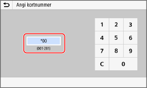 På fanen [Angi mottaker] på skjermbildet for skanning eller faks, trykker du på [Kortnummer].