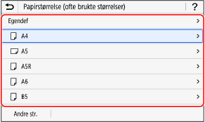 Trykk på [Andre str.] og velg papirformat fra listen som vises.