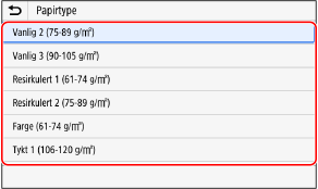 Du kan bla nedover på skjermbildet hvis du vil vise papirformater som ikke vises på skjermen.