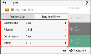 Konfigurer innstillinger for skanning på fanen [Send innstillinger].