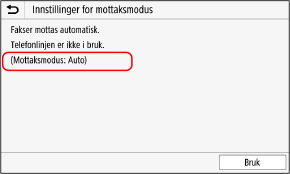Etter at meldingen [Innstillinger konfigurert.] vises, vil skjermbildet [Innstillinger for mottaksmodus] vises.