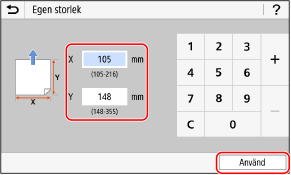 2 | Ange värden i [X] och [Y] och tryck på [Använd]. När vanligt förekommande icke-standardformat har registrerats kan du använda dem genom att trycka på [S1] - [S3]. |