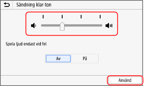 Dra skjutreglaget åt vänster eller höger för att ställa in volymen och tryck sedan på [Använd].
