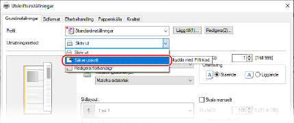 I [Utmatningsmetod] ska du välja [Säker utskrift].