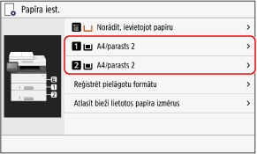 Varat mainīt ekrānā parādīto papīra formātu 3. darbības laikā. Neizmantoto papīra formātu paslēpšana