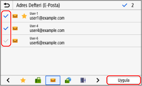 [Adres Defteri PIN'i] ekranı görüntülenirse PIN'i girin ve [Uygula] öğesine basın.