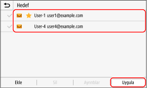 Gruba eklenecek hedeflerin onay kutularını işaretleyin ve [Uygula] öğesine basın.