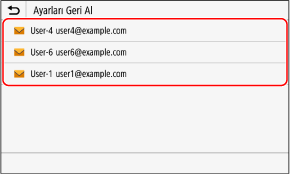 Tarama veya faks ekranındaki [Hedefi Belirle] sekmesinde [Ayarları Geri Al] öğesine basın.