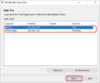 [Aygıt Listesi] öğesinden makineyi seçin ve [Sonraki] öğesine tıklayın.