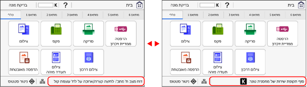 מסך זה מופיע כאשר אתה לוחץ על [] לוח הבקרה. כברירת מחדל, מסך [בית] מוצג לאחר ההדלקה ומיד לאחר סגירת מסך האתחול, ומיד לאחר הכניסה. מסך [בית]