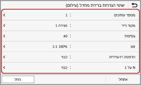 ניתן לשנות את הגדרות ברירת המחדל עבור פונקציות סריקה, העתקה ופונקציות אחרות הנפתחות באמצעות לוח הבקרה.