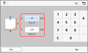 ניתן לרשום גדלים בעת שימוש תכוף בנייר בגודל לא סטנדרטי ספציפי. ניתן לקרוא את הנייר במסך הקלט הגודל, ולחסוך את הטרחה בהזנת הגודל.