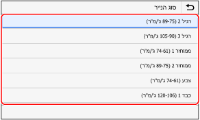 ניתן לשנות את גודל הנייר המוצג על המסך בשלב 1. הסתרת גודל נייר שאינו בשימוש