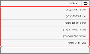 בעת שימוש בנייר בגודל או בסוג שונים מהנייר הרשום