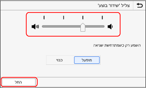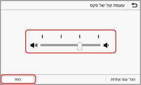 גררו את המחוון שמאלה או ימינה כדי לכוונן את עוצמת הקול, ולחץ על [החל].
