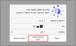 כאשר מקור מונח על משטח הזכוכית ומועתק באמצעות העתקה דו-צדדית או N על 1, מוצג המסך לסריקת המקור הבא.