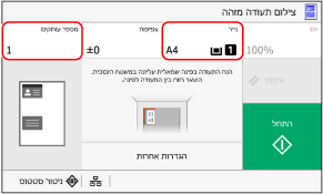 ניתן להשתמש בפונקציית העתקת תעודת זהות כדי להעתיק את הצד הקדמי והאחורי של רישיון נהיגה או תעודת זהות אחרת על אותו גיליון נייר בהגדלה של 100%. ניתן לבצע זאת במהירות ובנוחות ממסך [בית] בלוח הבקרה, למשל, בעת העתקת תעודות זהות בקבלה.