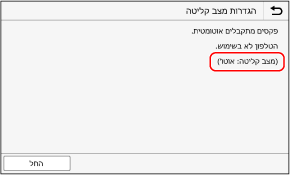 בנוסף ניתן להגדיר את ההגדרה לקבלת פקסים אוטומטית לאחר שהמכשיר מצלצל למשך פרק זמן מסוים.