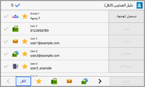 عند الاتصال بدليل العناوين من الشاشة [الرئيسية] أو شاشة المسح الضوئي أو الفاكس، يتم عرض الشاشة التالية.