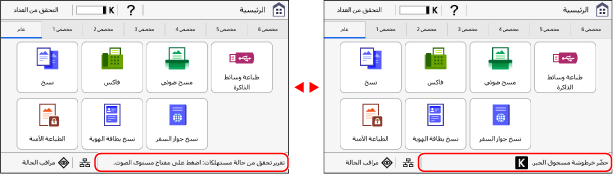 ] على الشاشة [الرئيسية] أو شاشة [فاكس] أو شاشة [مسح ضوئي].
