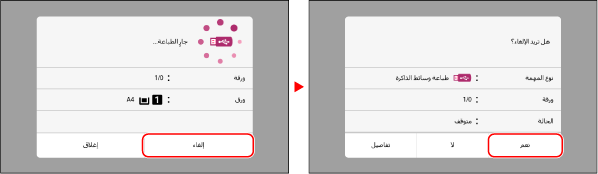 اتبع التعليمات الظاهرة على الشاشة لإلغاء الطباعة.