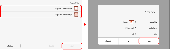 في حالة عرض قائمة المهام، حدد المهمة المطلوب إلغاؤها، واضغط على [إلغاء]