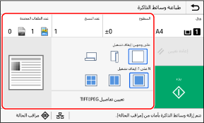 من لوحة التحكم، اضغط على [طباعة وسائط الذاكرة] في الشاشة [الرئيسية].