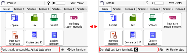 ] pe ecranele [Pornire], [Fax] sau [Scanare].