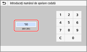Se afișează ecranul [Introduceţi numărul de apelare codată].